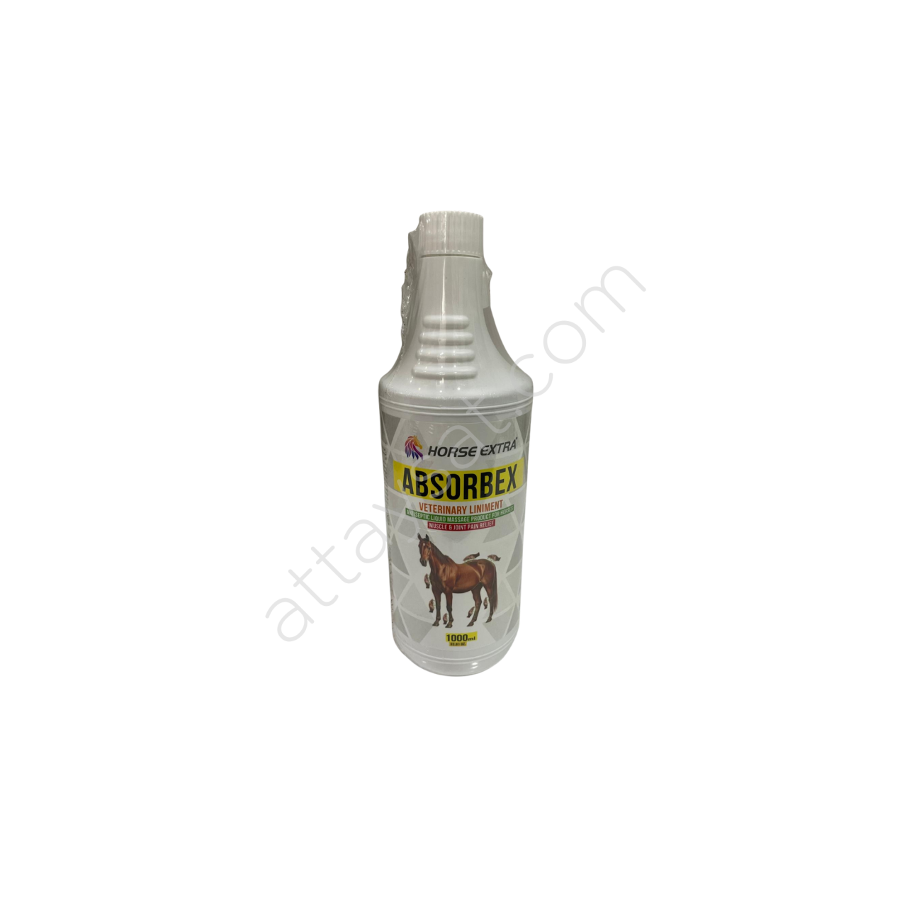 FARMAKOLOJİK ÖZELLİKLERİ: ABSORBEX veteriner hekimlikte haricen kullanılan bir kombinasyondur. Yarış atlarının adale, kas, bağ ve eklem yorgunluklarında kan dolaşımını çabuklaştırmada etkin bir kombinasyon olup sertleşen adale, kas, bağ, tendon ve eklemleri dinlendirir. Mentol ve Aseton uçucu özellikte olduğu için uygulama yerinde rahat ve çabuk emilime uğrar. Mentol, uygulama bölgesinde kılcal damarların genişlemesini sağlayarak bu bölgeyi ısıtır, birikmiş toksinlerin atılımını kolaylaştırarak ağrıyı ortadan kaldırır. Kas sertleşmelerini önler. Potasyum İyodür çözeltileri doku içine, kıl foliküllerine ve ter bezlerine kolayca yayılır. Timol’ün uyarıcı yorgunluk önleyici ve dinlendirici, güzel koku verici, temizleyici ve nemlendirici etkilerine ilaveten antiseptik ve dezenfektan etkisi ile cilt enfeksiyonlarında oluşan mikrop ve bakterileri öldürür. Bunun yanı sıra Tendinitis ve benzeri Tendon, Eklem, Bağ ve Kas hastalıklarında etki sağlamak için kullanılır.